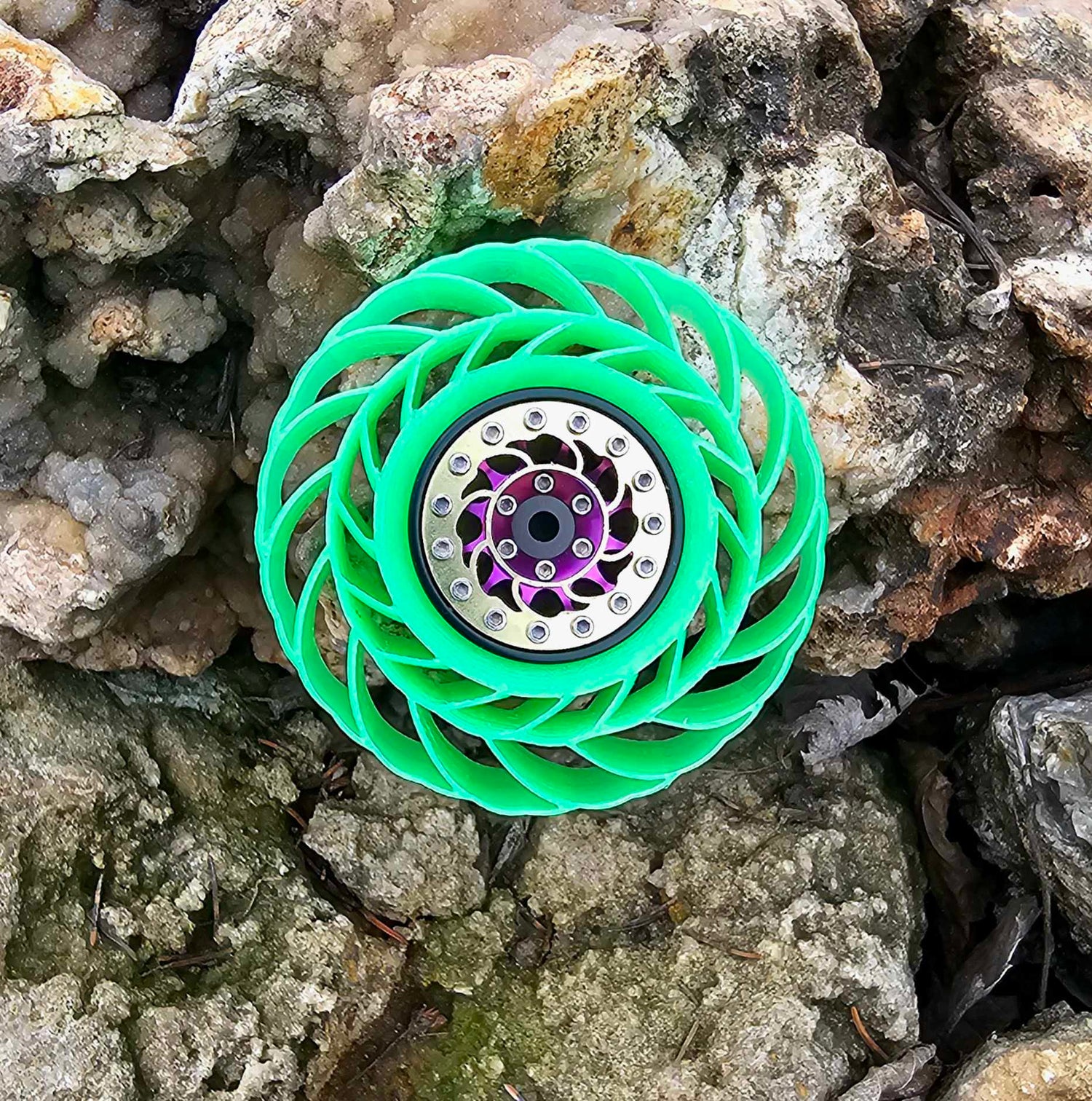 Our Performance Insertz deal with deformation correctly, directionally. As the insert rotates, it does a few very interesting things. First it opens up the Double Barrel Profile in front to promote conformity to the upcoming surface. Then transfers deformation, by design, to the rear of the tire. This deformation gets released at the very back of the conforming surface with a forward pushing action. This gives us our Forward Propulsion Technology, simply powered by clever design, the rotation that's provided by your motor and conforming that's provided by gravity.