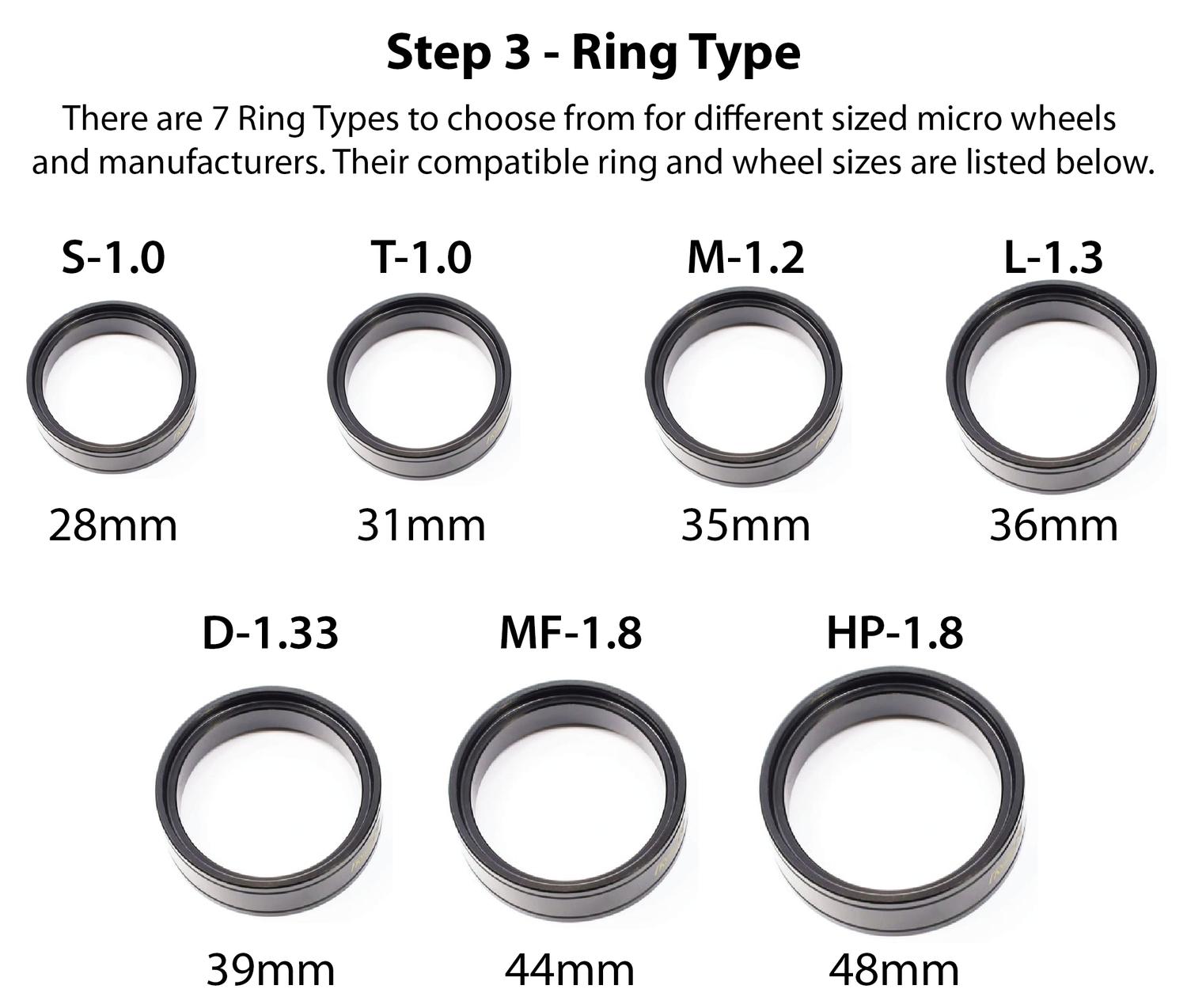 After you have your OD sizing selected, our new system gives you two more options (widths & rings). We offer up to 5 different widths and up to 6 different ring types depending on what size SlymeBallz you have selected. Certain widths and rings have been left out of several versions because there is nothing for them yet. You will find detailed information on our diagram and cheat sheet for widths and ring types.