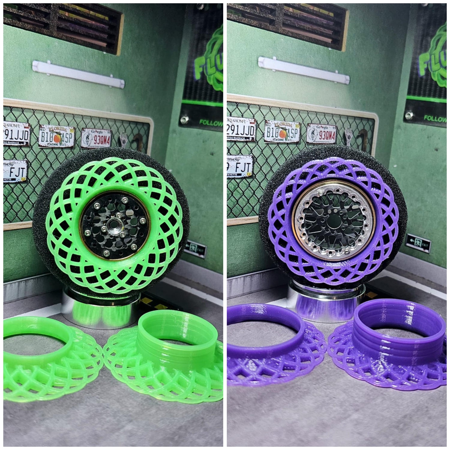 The F-Cupz Inserts are engineered to be modular and tunable. You can build multiple combinations this way. You can choose the amount of support/conformity you'd like by selecting a larger or smaller F-Cup. You can even pair different sizes with each other to achieve a soft or firm feel on certain sides of tires, or just running half of the F-Cup on the wheel for side wall support on just one side. The F-Cupz are a two-piece insert and are sold in pairs of two. This allows you to purchase exactly what you need, easily add pairs for tuning, or get that extra pair for the 6x6. You'll receive two standard halves and two cut-to-fit halves. This allows you to custom fit for any width wheel.